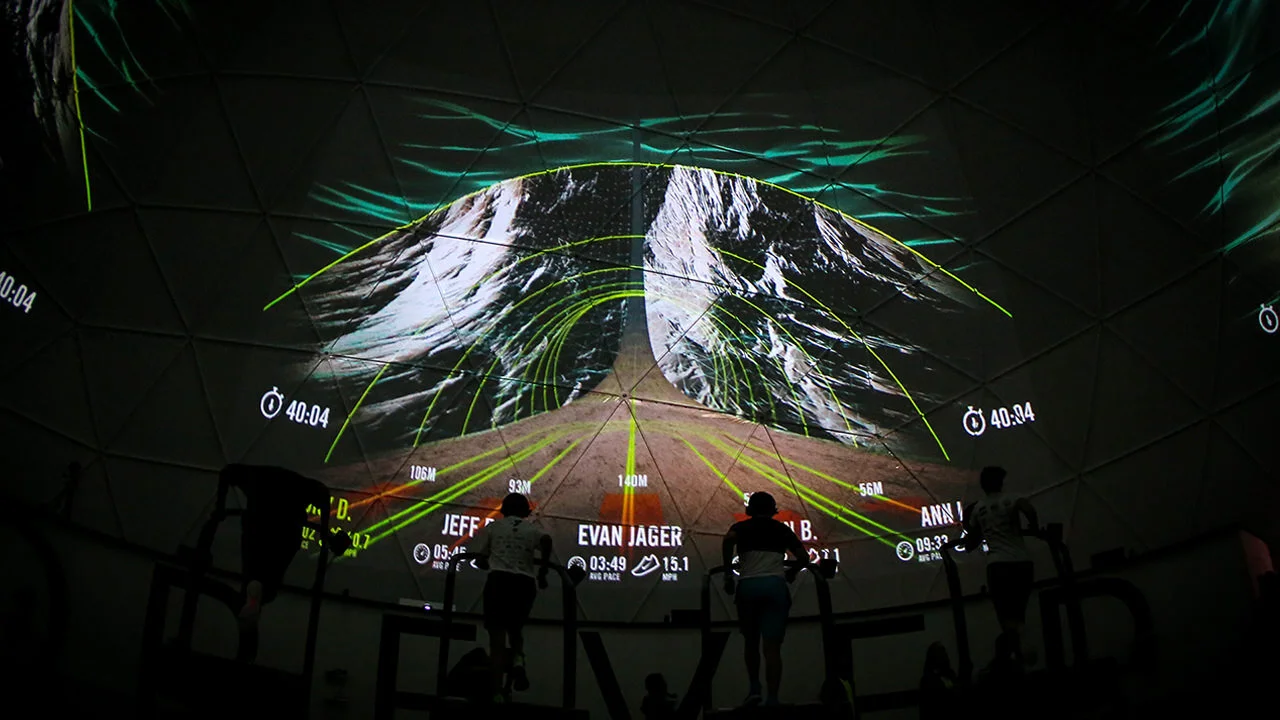 Using the Nike Run Club and Lunar footwear branding as our base, 16 runners at a time competed on treadmills in a 360º virtual environment in the Trial Dome. After trying on the footwear and a brief warmup by the team coach, everyone was ready to race in the Lunars! These competitors ran through a series of “infinite roads” against the Olympic athlete Evan Jaeger’s top speed for 60 seconds. Each runner viewed their stats and progress in real time, overlaid on the virtual roads.